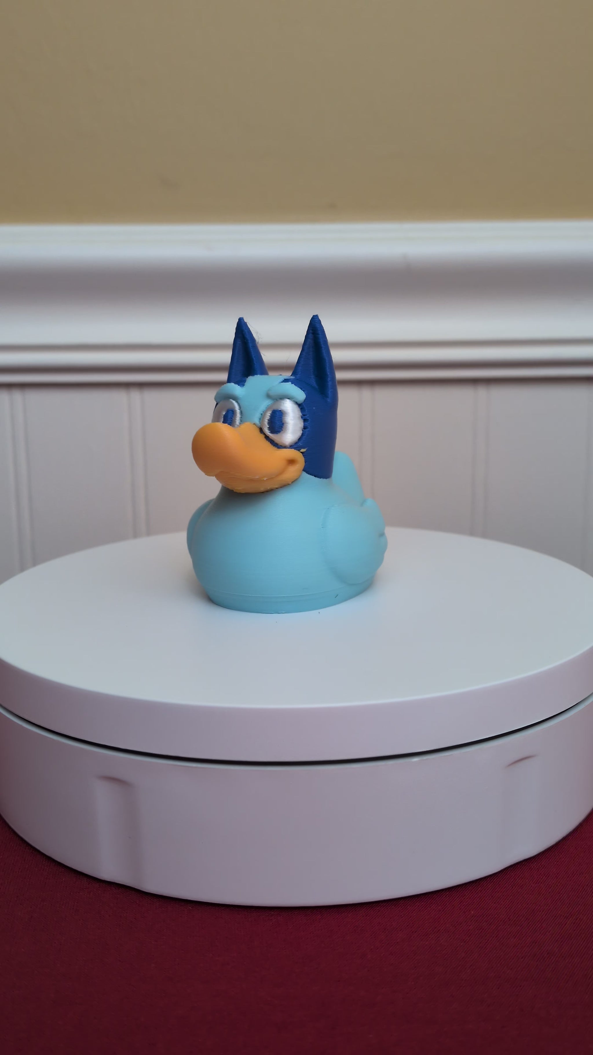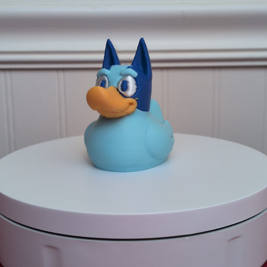 This Bluey Duck is 3D printed with high-quality PLA plastic — sturdy, detailed, and full of charm! She’s not rubber and won’t float, so keep her on dry land where she can play safely. PLA can handle temps up to 140°F.