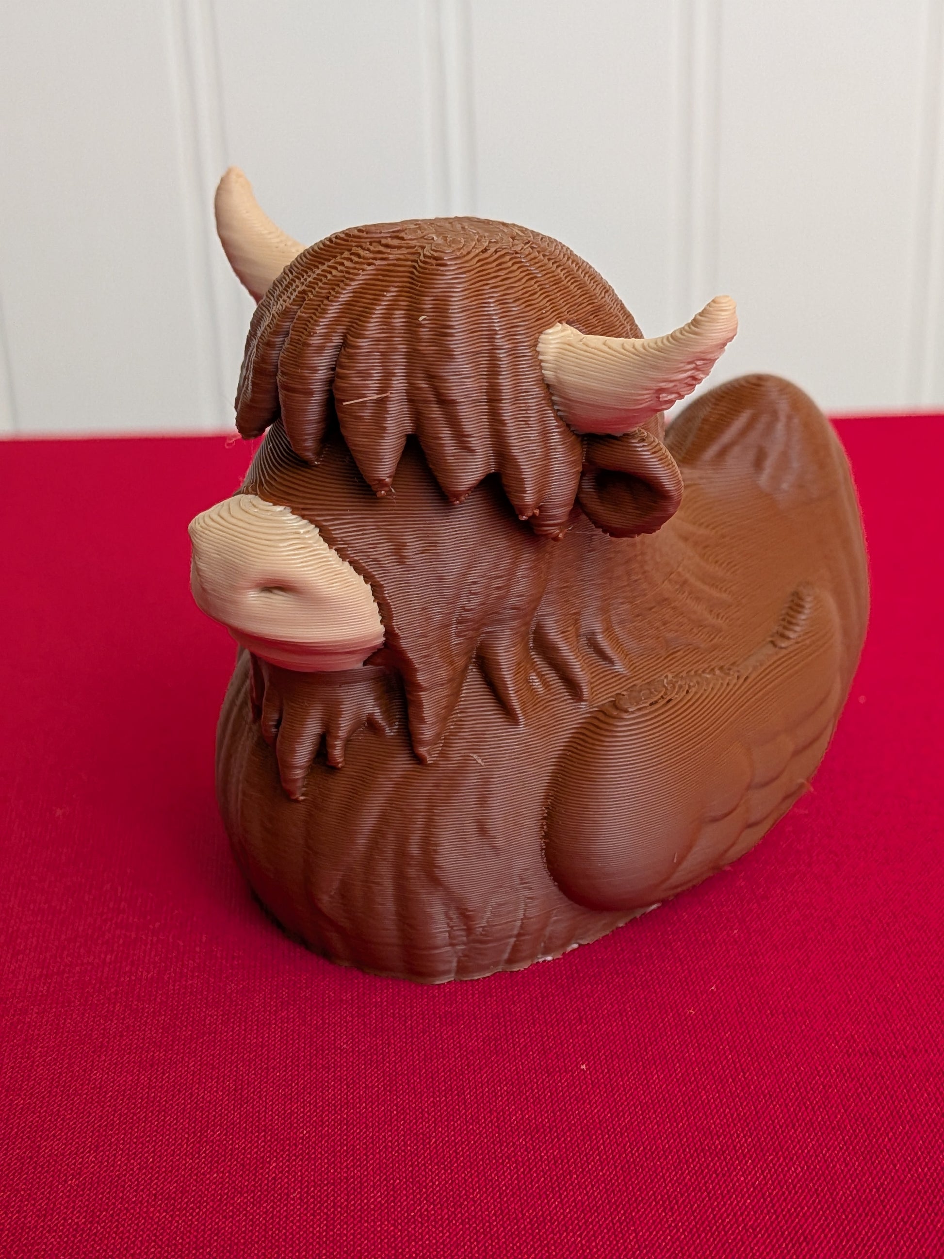 Bring a touch of the countryside to your collection with the Highland Cow Duck! Featuring long, shaggy hair, curved horns, and a lovable, rustic charm, this duck captures the spirit of the iconic Scottish breed. Perfect for animal lovers, farm-themed dรฉcor, or anyone who enjoys unique and quirky 3D-printed characters.