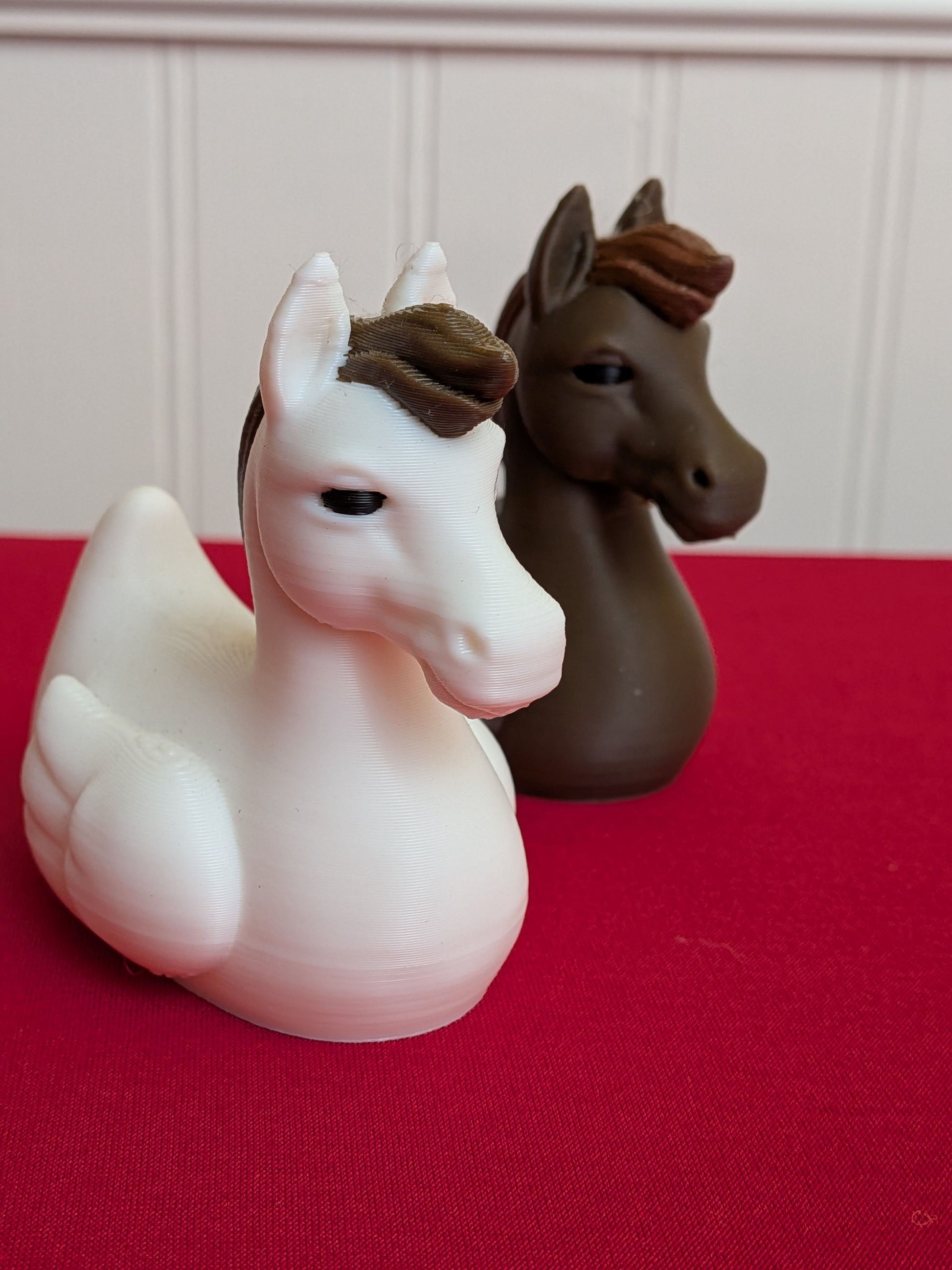 Bring a touch of equestrian charm to your collection with the Horse Duck! Featuring a flowing mane, detailed hooves, and a proud stance, this duck captures the grace and beauty of a classic horse in a whimsical, collectible form. Perfect for animal lovers, farm-themed dΓ©cor, or anyone who enjoys unique 3D-printed characters.