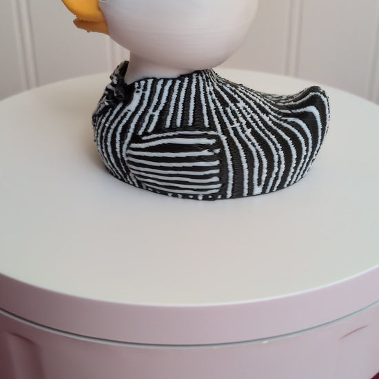 This Jack Skellington rendition brings the Pumpkin King to duck form — complete with his signature pinstripe suit, charming grin, and spooky-but-silly charisma. Jack Duckington rules over the Halloween flock with equal parts fright and delight. Whether you’re a fan of Halloween Town or just love a dash of gothic charm, this ducky skeleton is ready to quack up your collection.