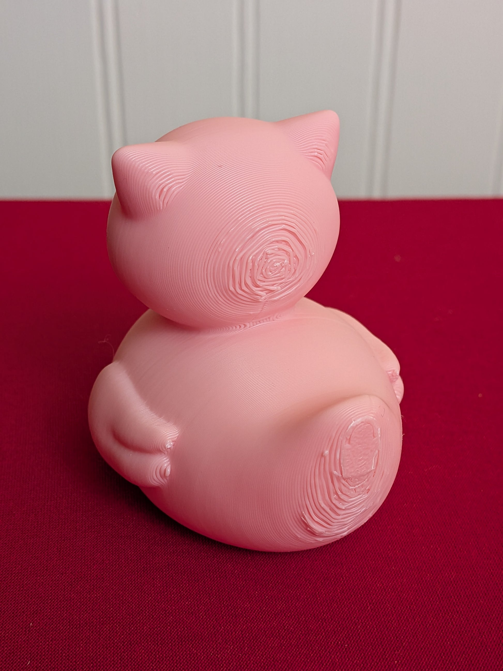Each duck is 3D printed with high-quality PLA plastic, detailed, durable, and ready to display. PLA can handle temperatures up to 140°F, so avoid leaving your duck in hot areas to prevent warping or melting.