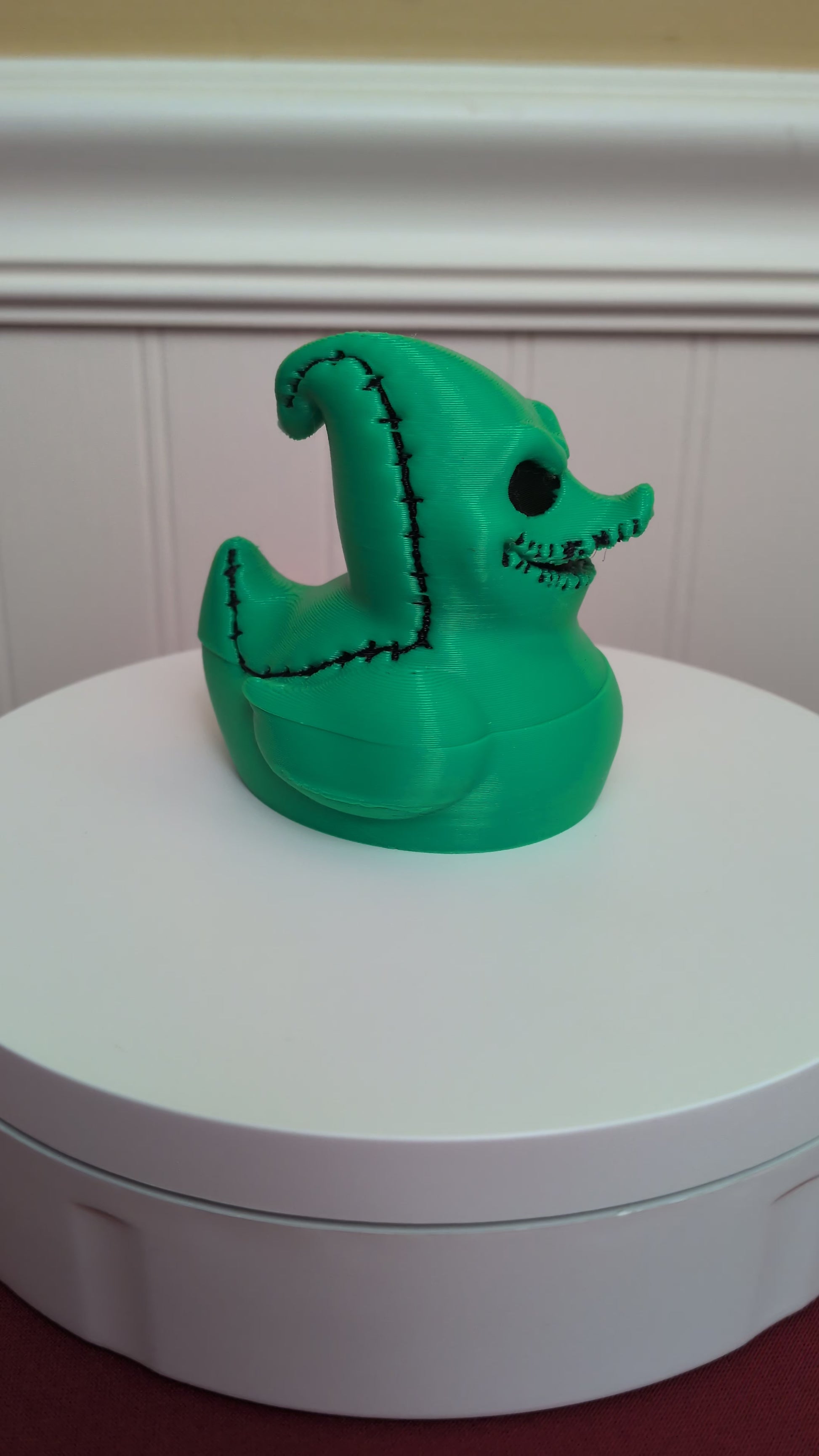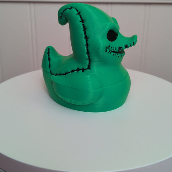 This is a 3D printed duck inspired by Oogie Boogie, the classic spooky villain we all know and love! Designed with creepy-cute charm and Halloween flair, this collectible duck is made from high-quality PLA plastic — durable, detailed, and perfect for fans of dark and whimsical art.