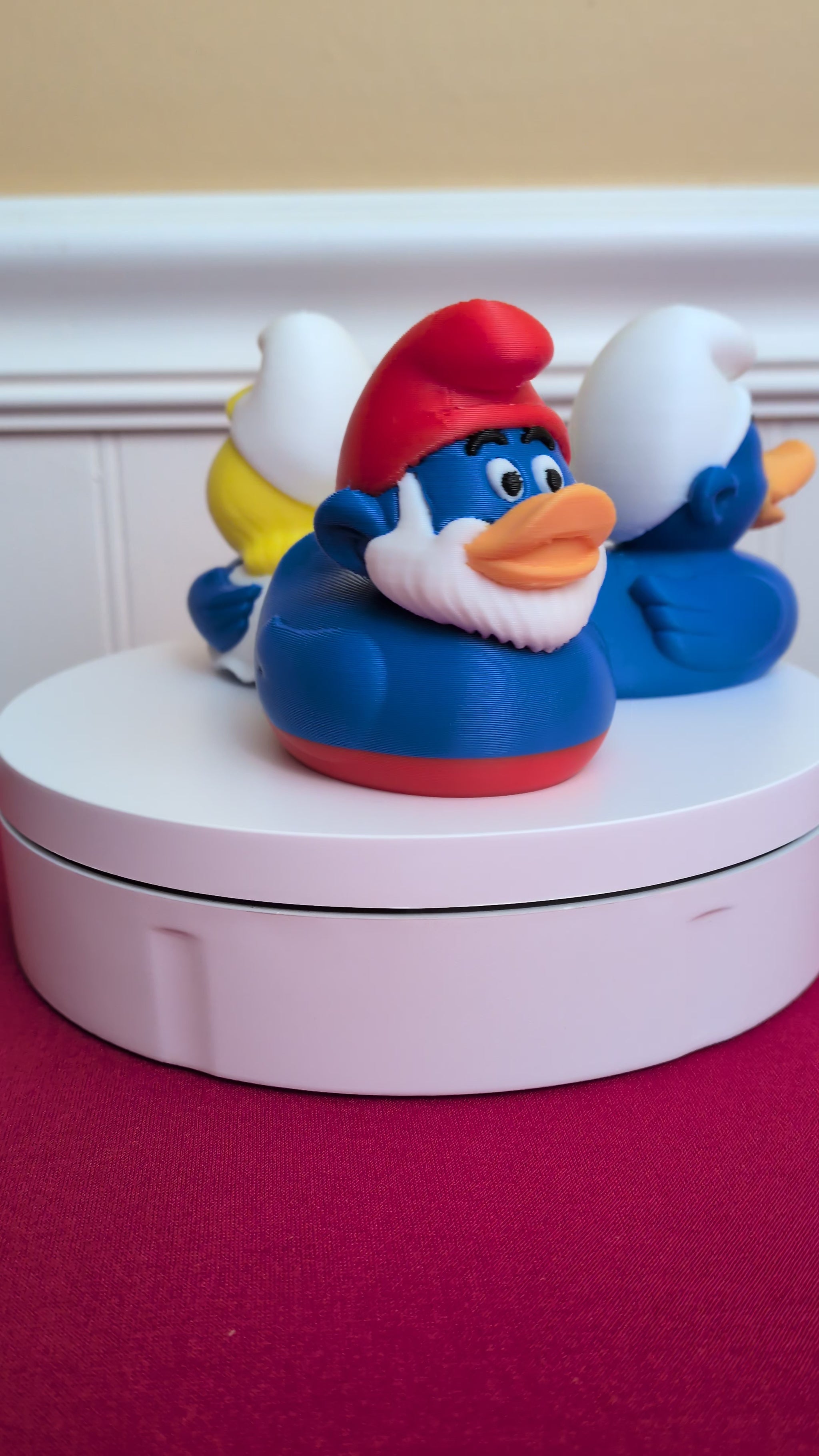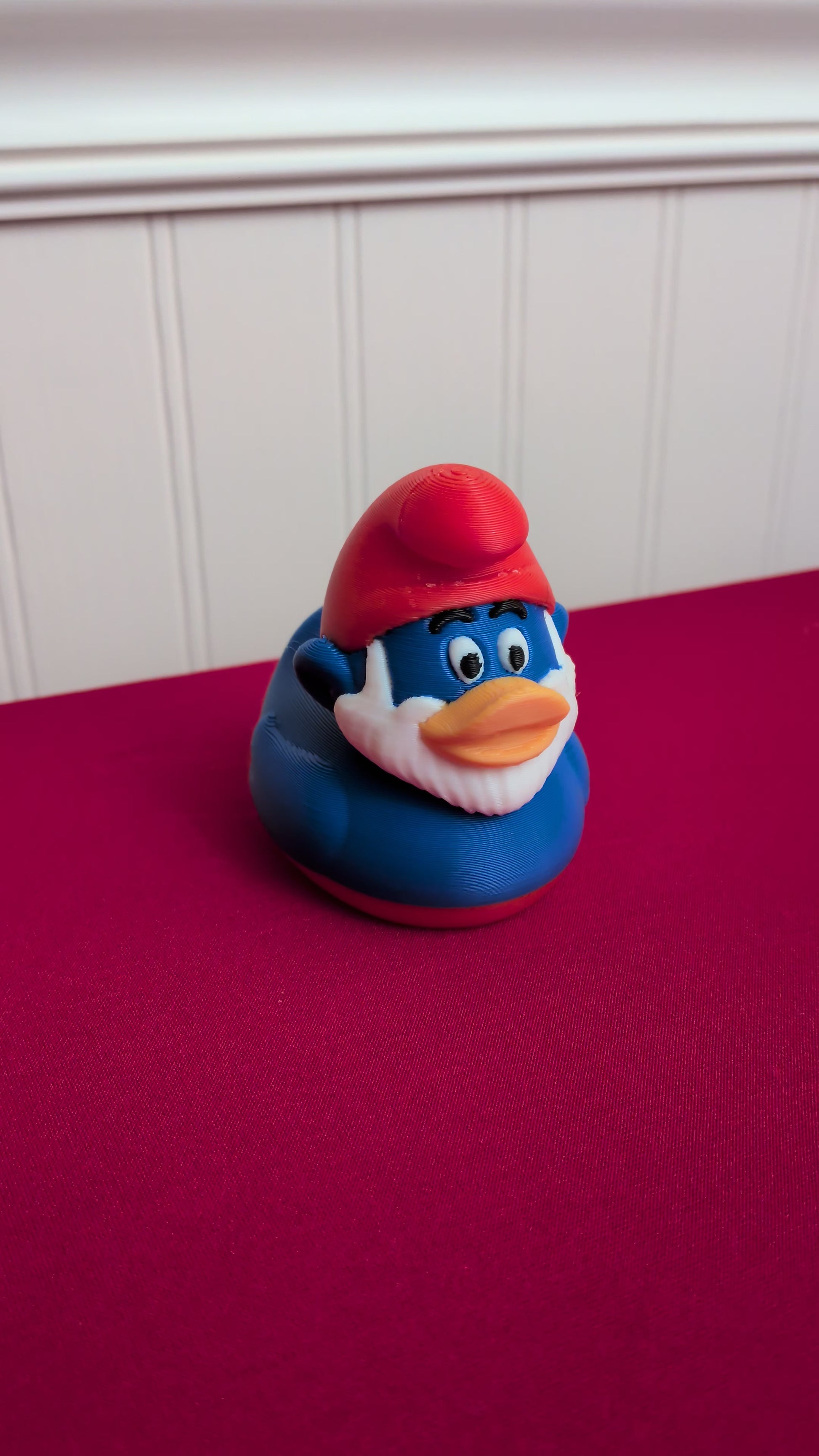 This Papa Smurf rendition has his bright red hat, large white beard, and happy gaze. Papa Duck is the wise, blue-feathered leader of the flock — full of heart, humor, and a touch of sass. Whether you’re creating your own magical village collection or just want a little classic charm on your desk, this Papa Smurf–inspired duck is ready to bring calm, character, and a smile to your day.