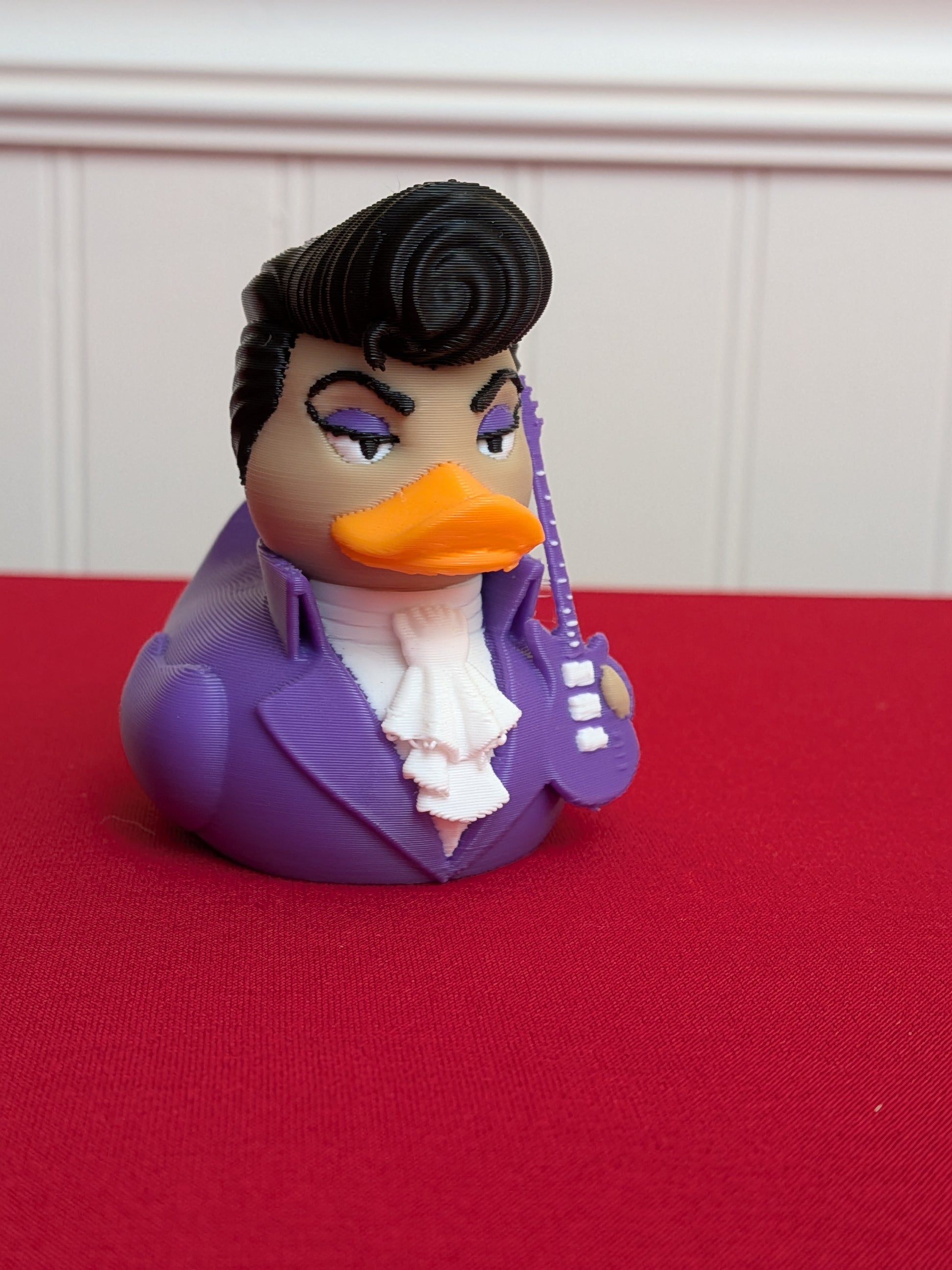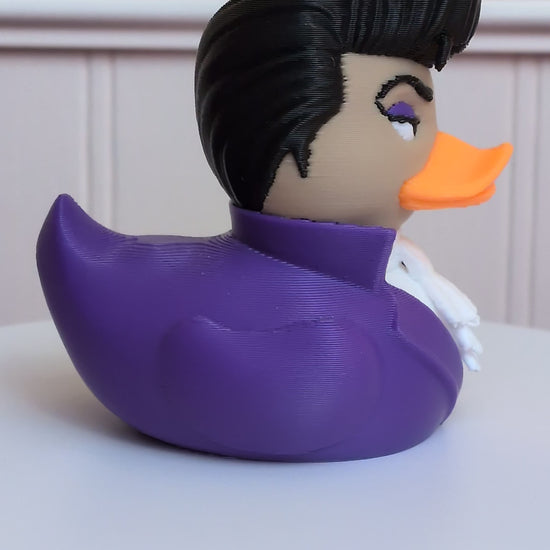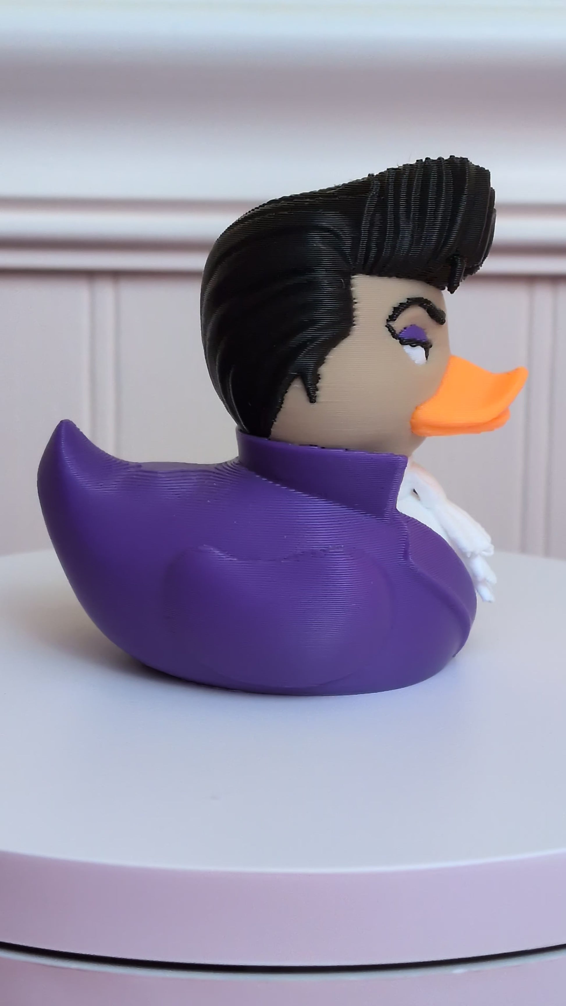 This Prince Duck is 3D printed with high-quality PLA plastic — detailed, sturdy, and totally electric. He’s not rubber and won’t float, so keep him on dry land where he can shine like the star he is. PLA can handle temps up to 140°F, but avoid leaving him in hot spots.