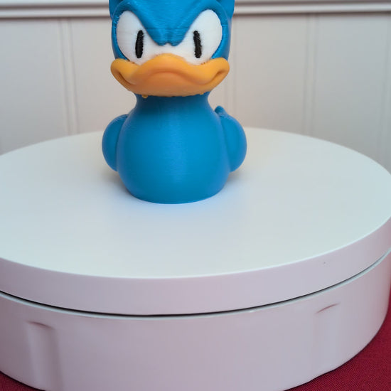 Speed into your collection with the Sonic Duck! Inspired by the iconic blue hedgehog, this duck features Sonicβs spiky blue βhair,β confident grin, and signature red shoes details. Perfect for fans of classic video games, collectors of quirky characters, or anyone who loves fast and fun 3D-printed ducks.